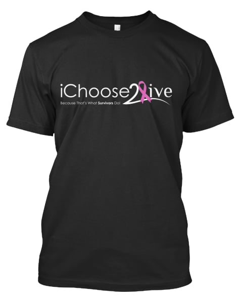 Promote Breast Cancer Awareness in October and for the rest of the year by ordering and wearing this limited edition iChoose2live t-shirt! Our new shirts are printed on soft polyester cotton blend shirts! You'll truly feel good wearing one of these!